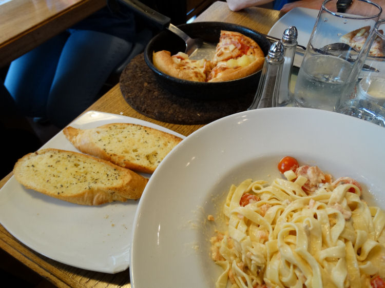 We hadden inmiddels wel trek gekregen, maar nog geen restaurantje gezien waar we zouden willen eten, toen we weer langs de Pizza Hut kwamen.