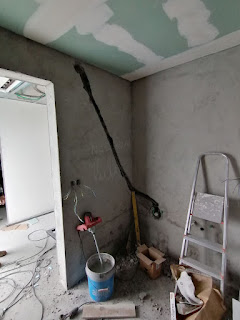 Gelukkig waren ze daar nog niet eerder aan begonnen, want omdat de airco niet paste waar hij in eerste instantie zou komen en die amateur van een installateur dat tijdens bezoeken en meten niet opgemerkt heeft, moest hij verplaatst worden en daarvoor moest er een nieuwe afvoer gemaakt worden.